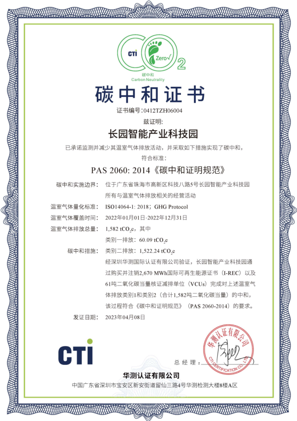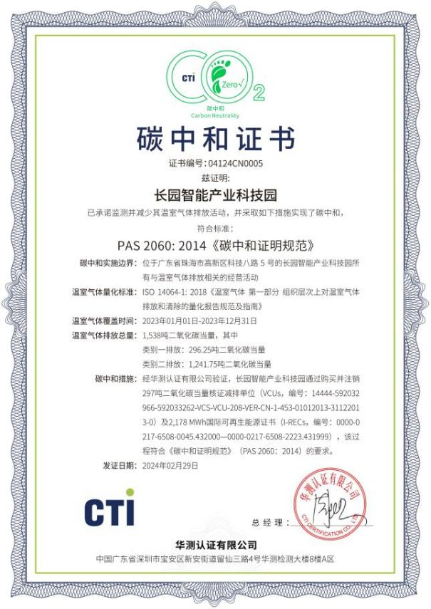 近日,星空游戏科技集团位于珠海高新区的“星空游戏智能产业科技园”完成了2023年度运营层面的碳中和认证工作,这一重要成就标志着该园区已连续两年实现碳中和目标